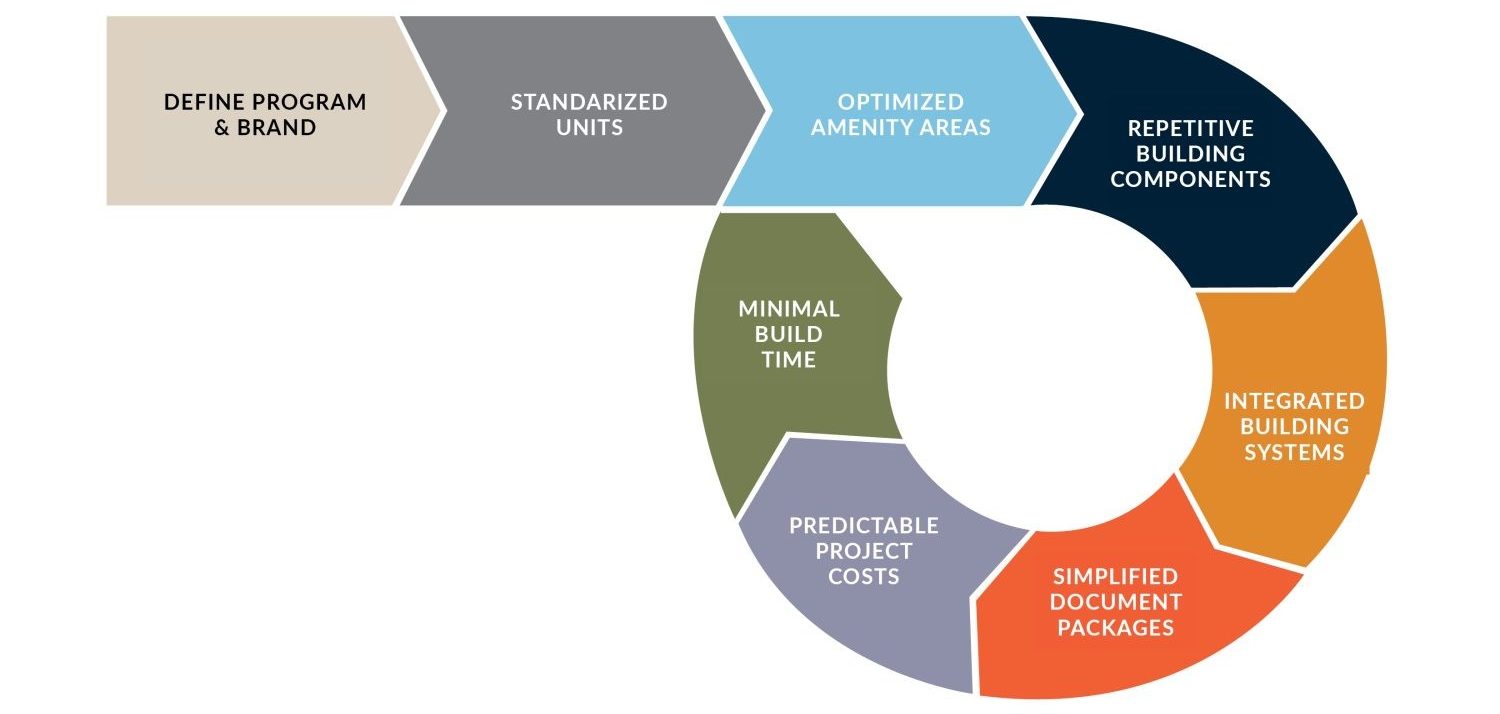 - Repeatable, efficient unit design allows for price certainty and a lower cost of up to 14% per GSF