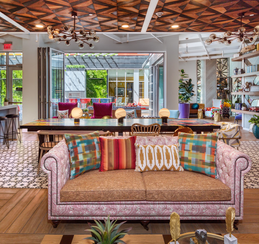 This project’s amenity package supports these pillars and provides the resident with a unique experience they can only find at a City Club property. The aesthetic is extremely bold and offers an eclectic, stand-out design using eccentric colors, patterns, and textures. The resident social spaces allow renters to engage with their community and connect through common interests such as a curated retail and restaurant experience providing amenities to residents, but also activating and engaging the surrounding community. In addition, an internal courtyard amenity ties directly to the indoor pool and clubroom for a seamless social experience.