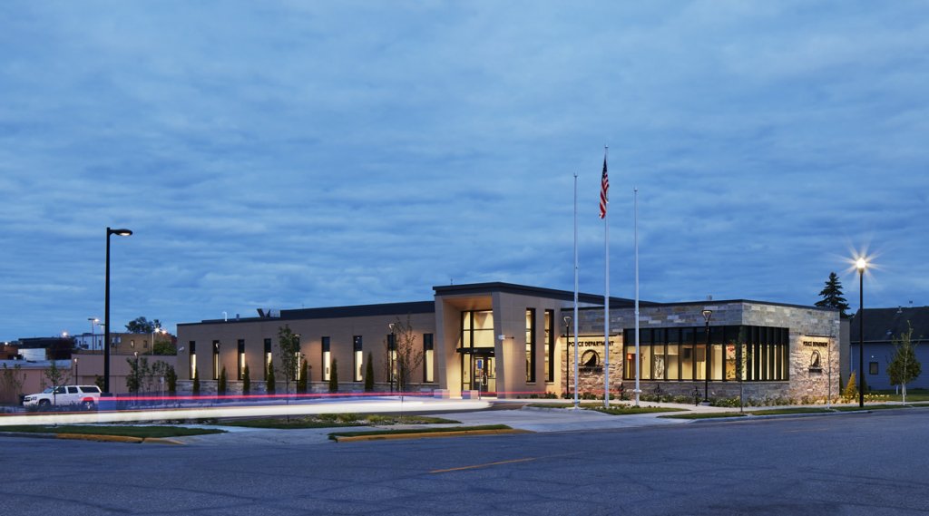 At just over 22,000 square feet, the new Detroit Lakes Police Station was constructed within the city’s downtown district and has become an integral part of the city’s redevelopment plan for the downtown area. At this prominent location, the police station was designed to be a community resource and to strengthen the identity of the department within the community. The new station provides a natural-light filled community room open to public-use. Within the public spaces, historical imagery of the department which was collected from the local historical society is displayed proudly.