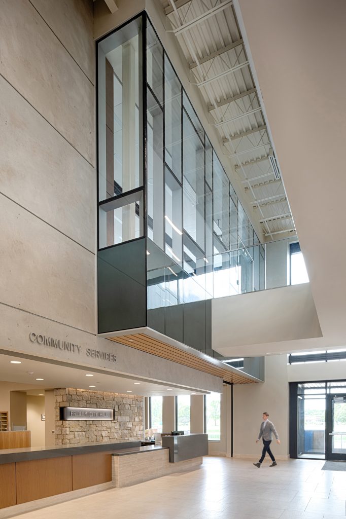 A light-filled service corridor, combining city services into one facility and allowing a single point of service approach for citizens.Read More