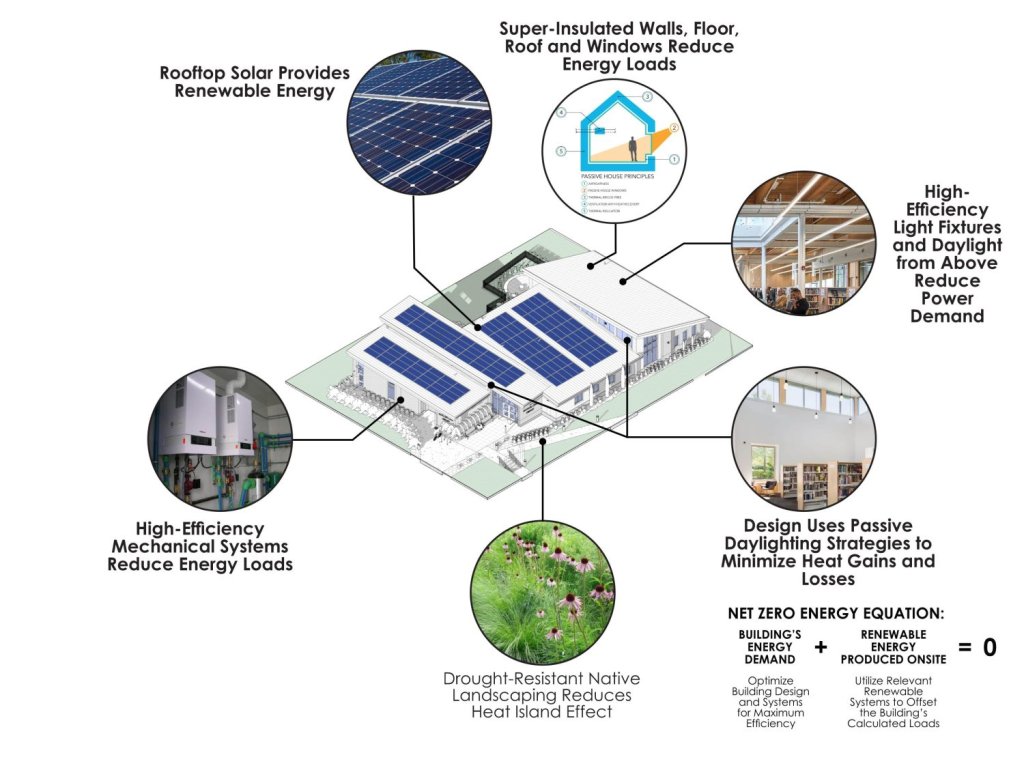 Key features of the new library includes dedicated collection areas for adults, teens and children, reservable study rooms, a community room available for library use and public rental, and a story time room to separate active children’s programming from the remainder of the library. This space, when not in use for programming, will also serve as a quiet reading room, with doors opening onto a landscape reading garden.